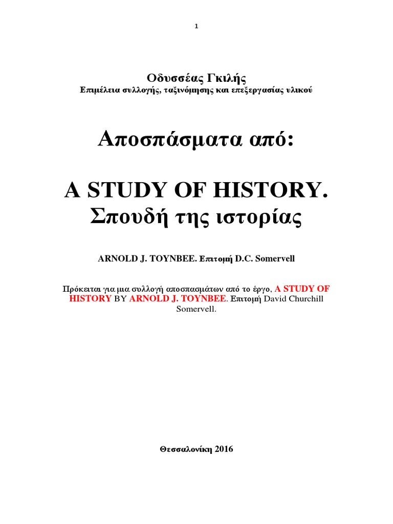 Odysseas Gkilhs Toynbee A Study Of History Spoydh Ths