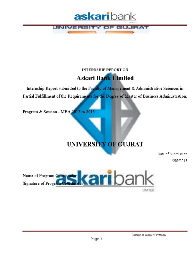 Internship Report On Askari Bank Limited Cheque Clearing Finance