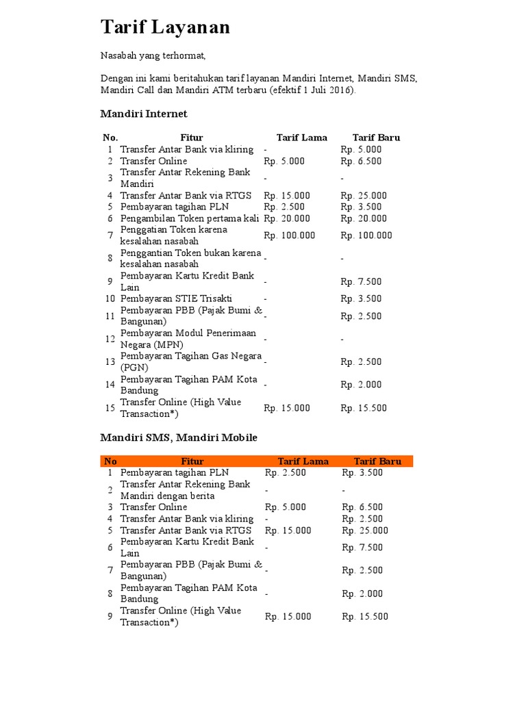 Banken Tarif