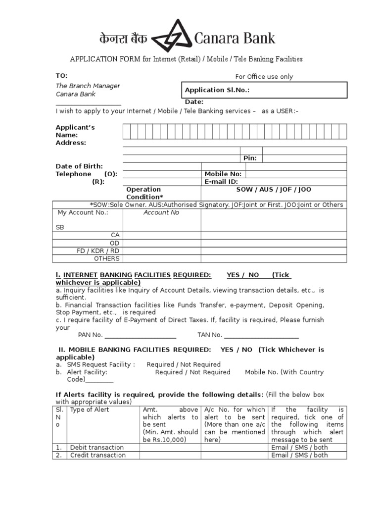 Business Internet Banking Application Form Pdf Free Download