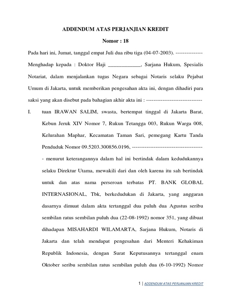 Addendum Atas Perjanjian Kredit Pdf