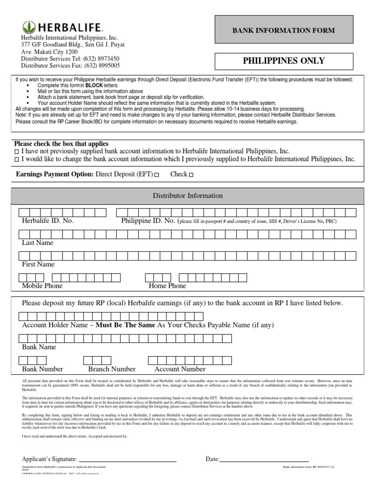 Eft Form For Herbalife India