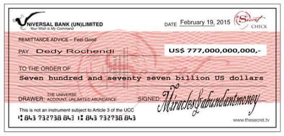Blank Check From The Universe The Secret Check Money