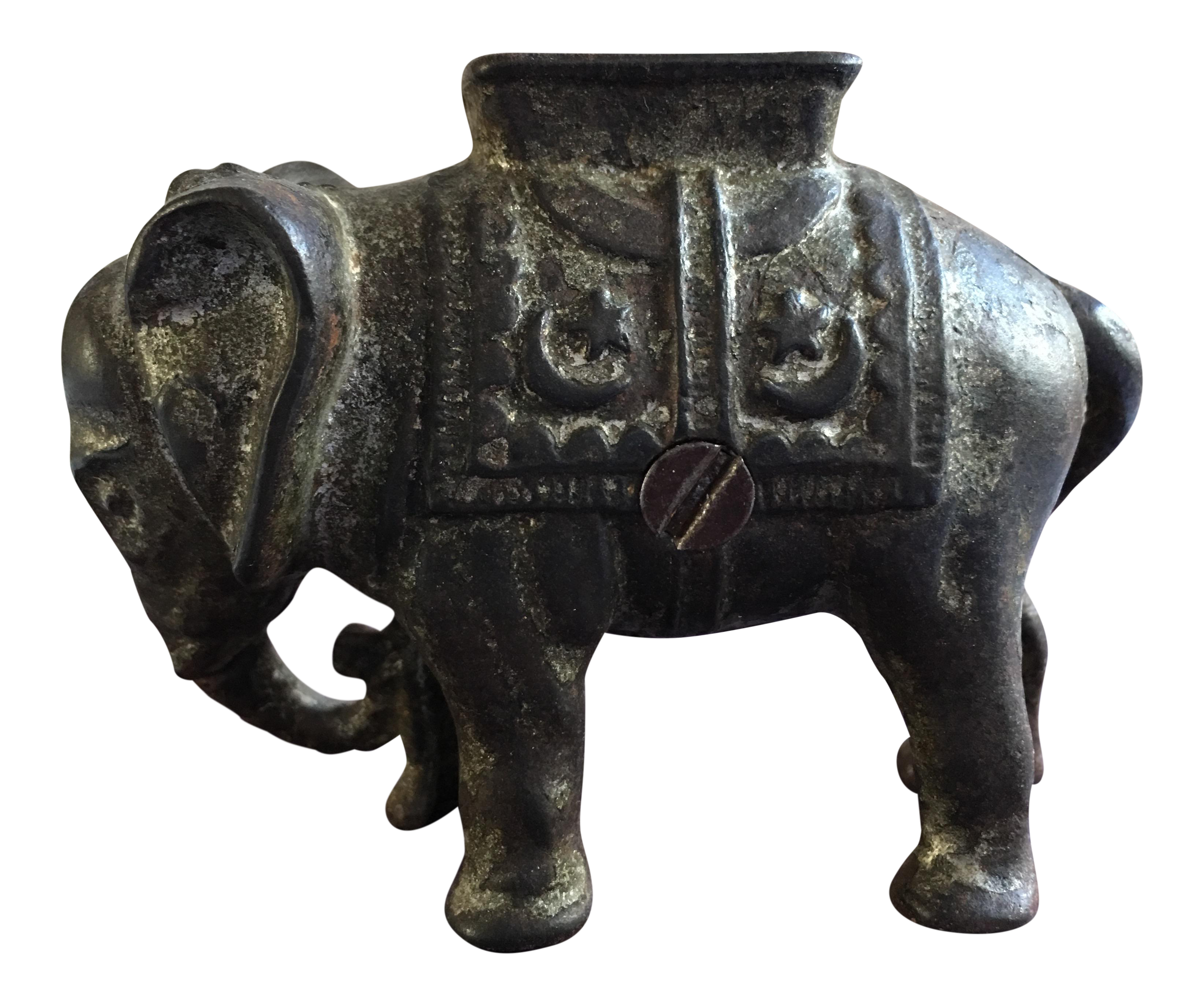 Lot Art Vintage Cast Iron Elephant Coin Bank